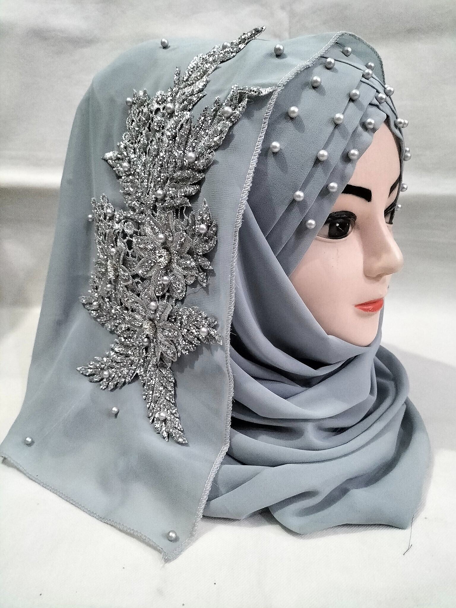 Pearl Floral Ready to Wear with Silver Bunch – Grey