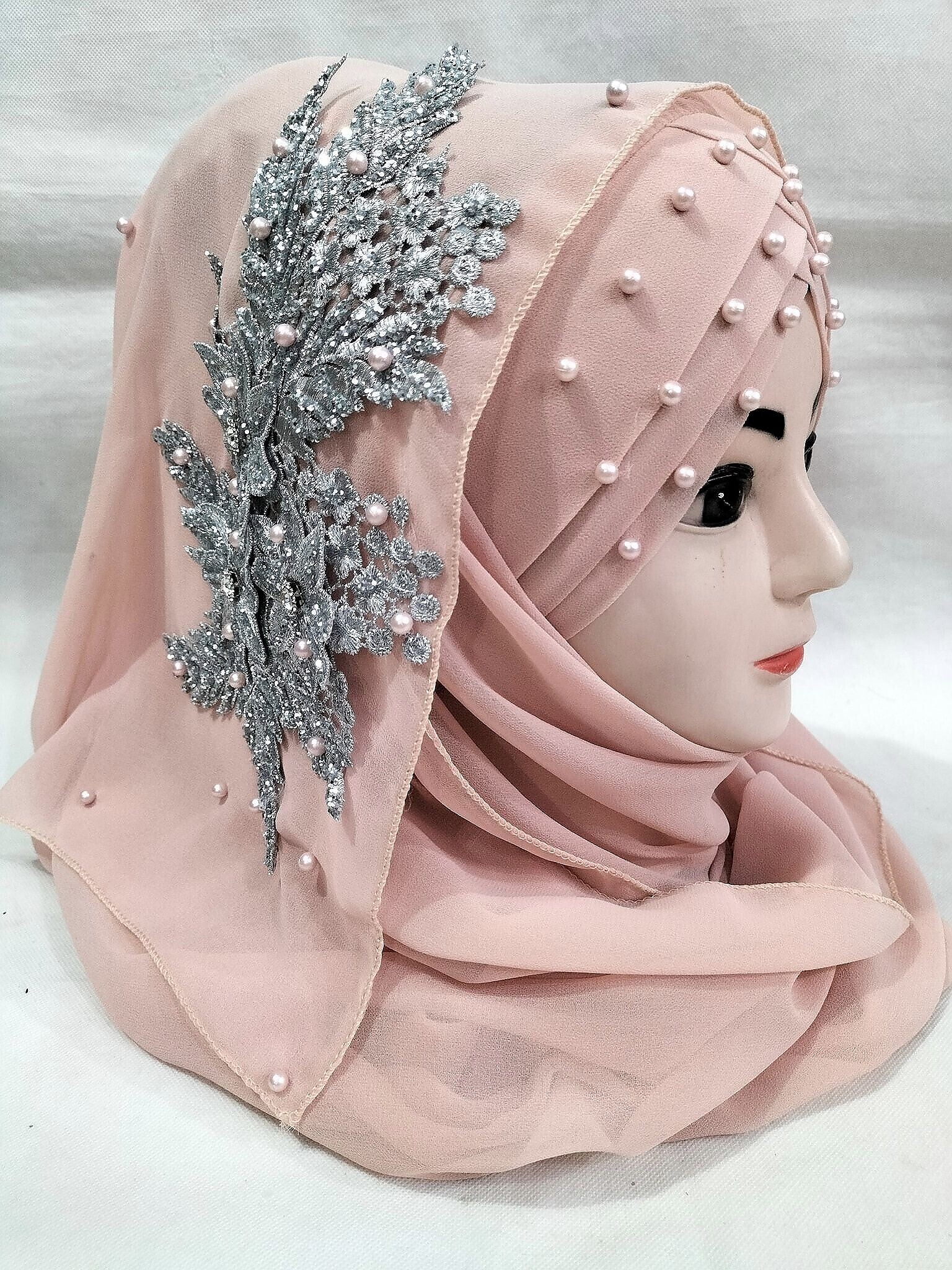 Pearl Floral Ready to Wear with Silver Bunch – Nude Pink