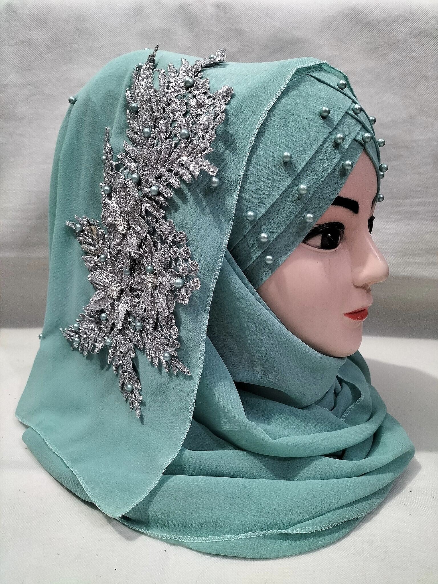 Pearl Floral Ready to Wear with Silver Bunch – Pastel Green
