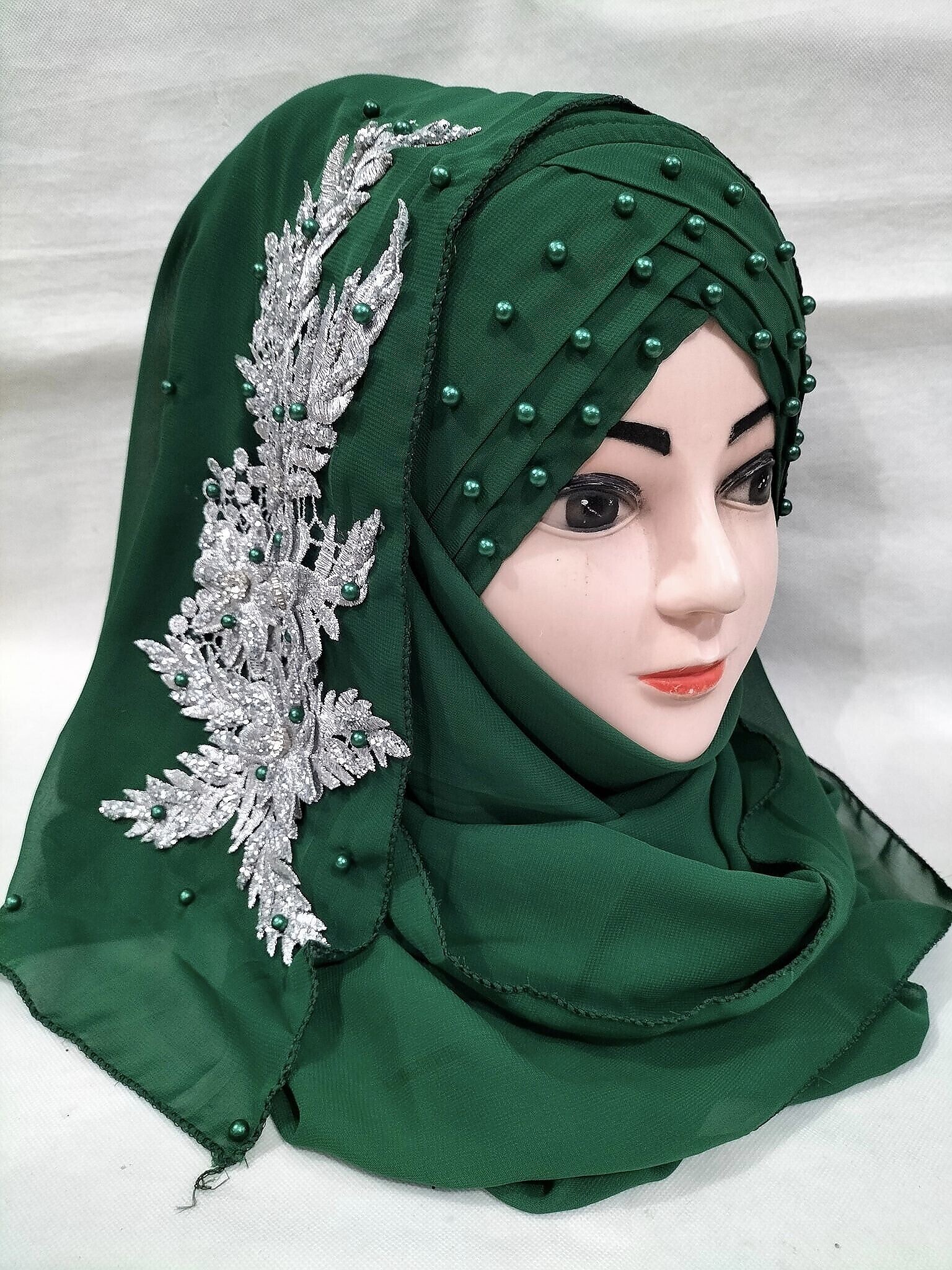 Pearl Floral Ready to Wear with Silver Bunch – Sea Green