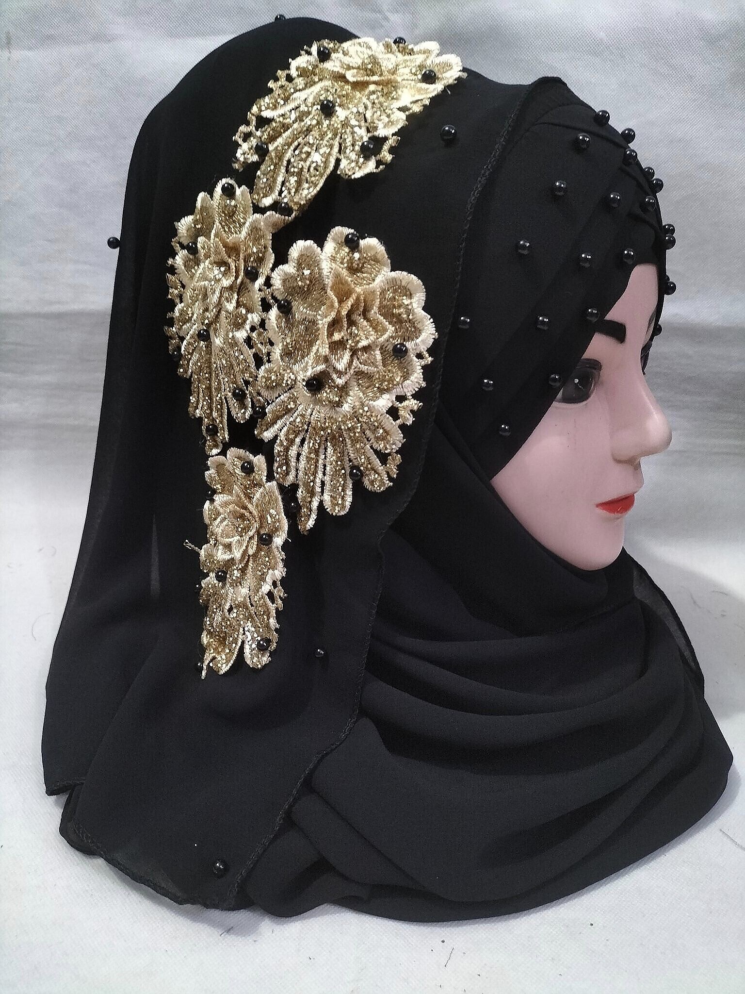 Pearl Ready to Wear with 3D Golden Bunch – Black