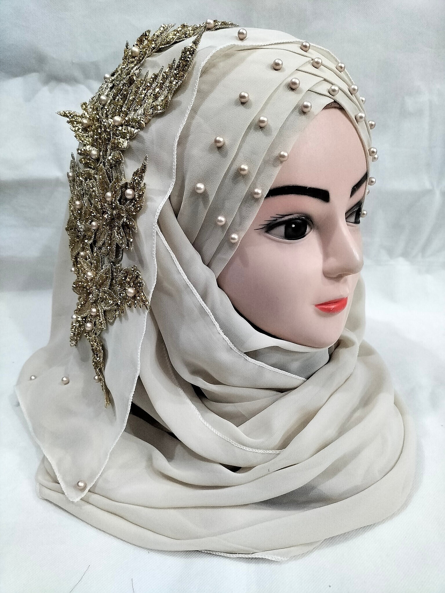 Pearl Ready to Wear with Bunch – Beige