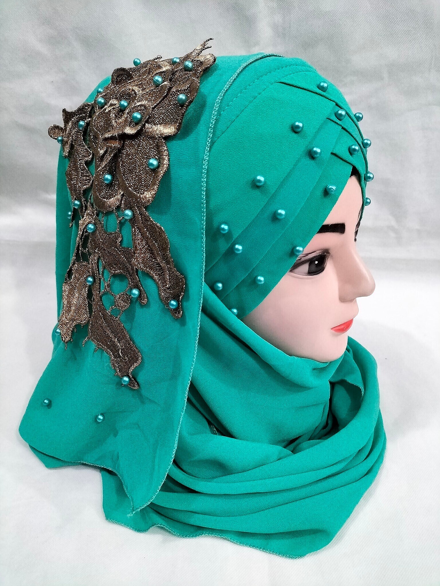 Pearl Ready to Wear with Fancy Bunch – Aqua Green