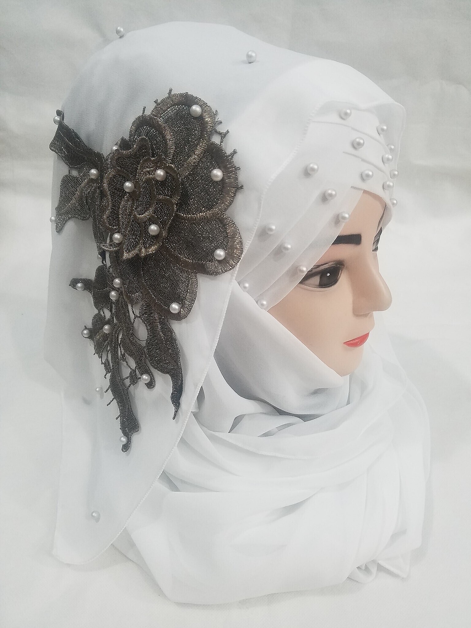 Pearl Ready to Wear with Fancy Bunch – White