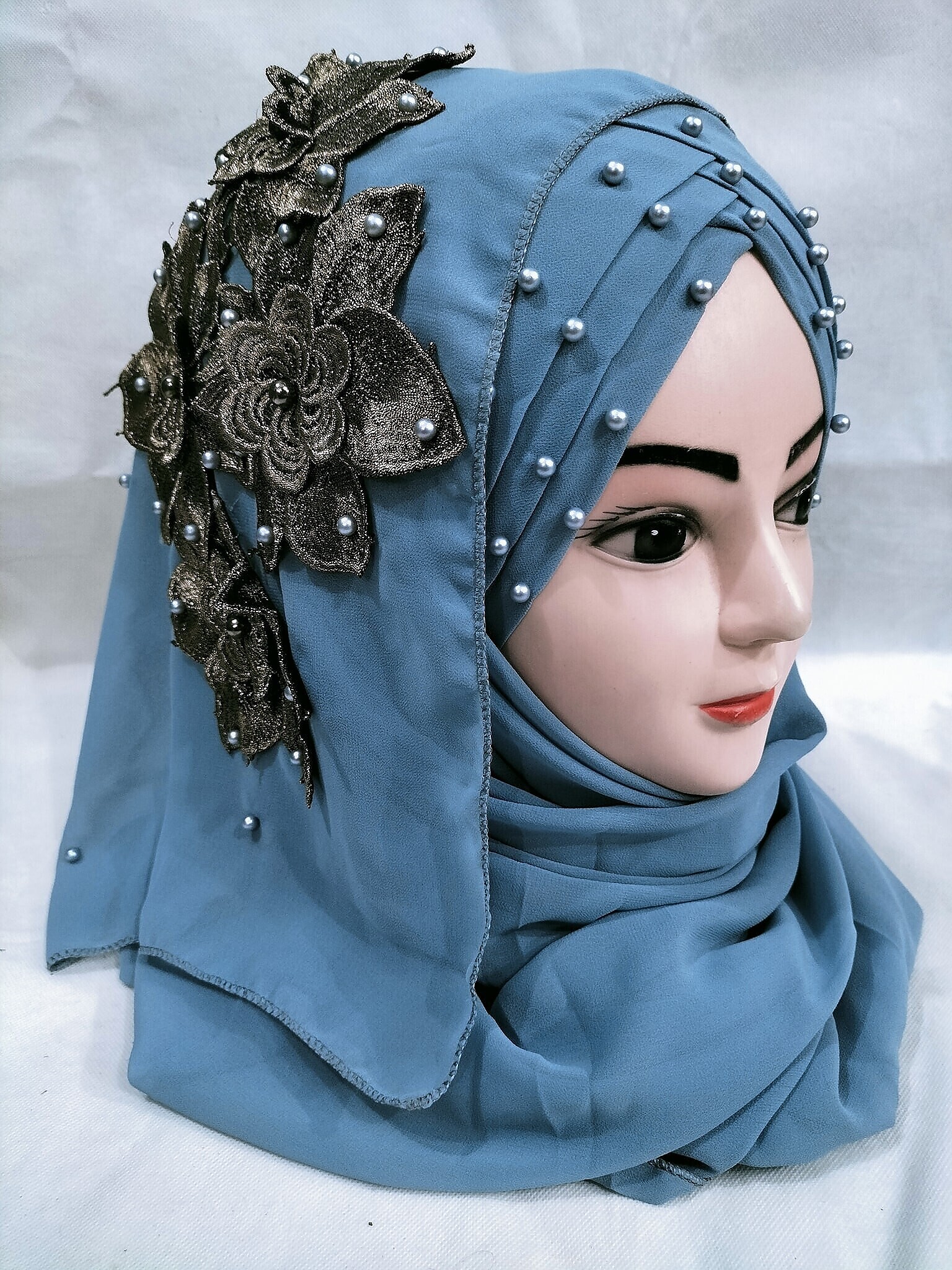 Pearl Ready to Wear with Flower Bunch – Light Denim