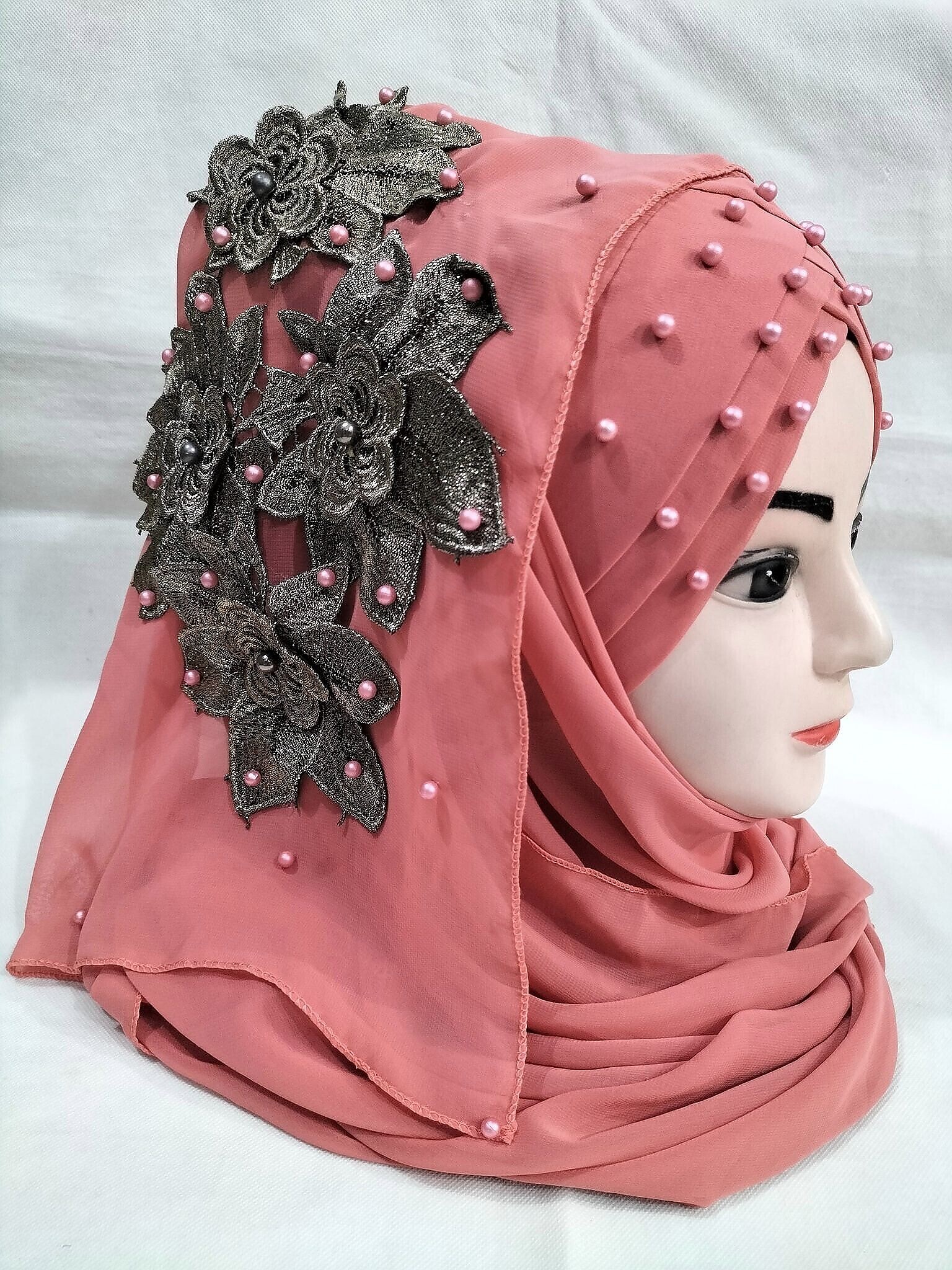 Pearl Ready to Wear with Flower Bunch – Rust Brown