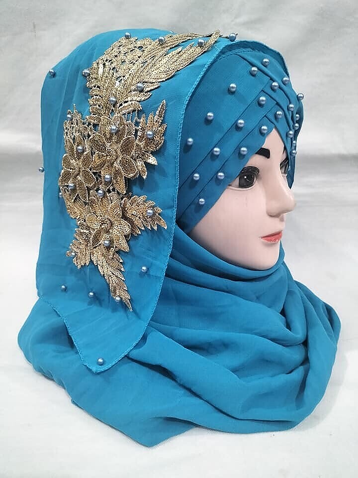 Pearl Ready to Wear with Golden Bunch – Design 2 – Aqua Blue
