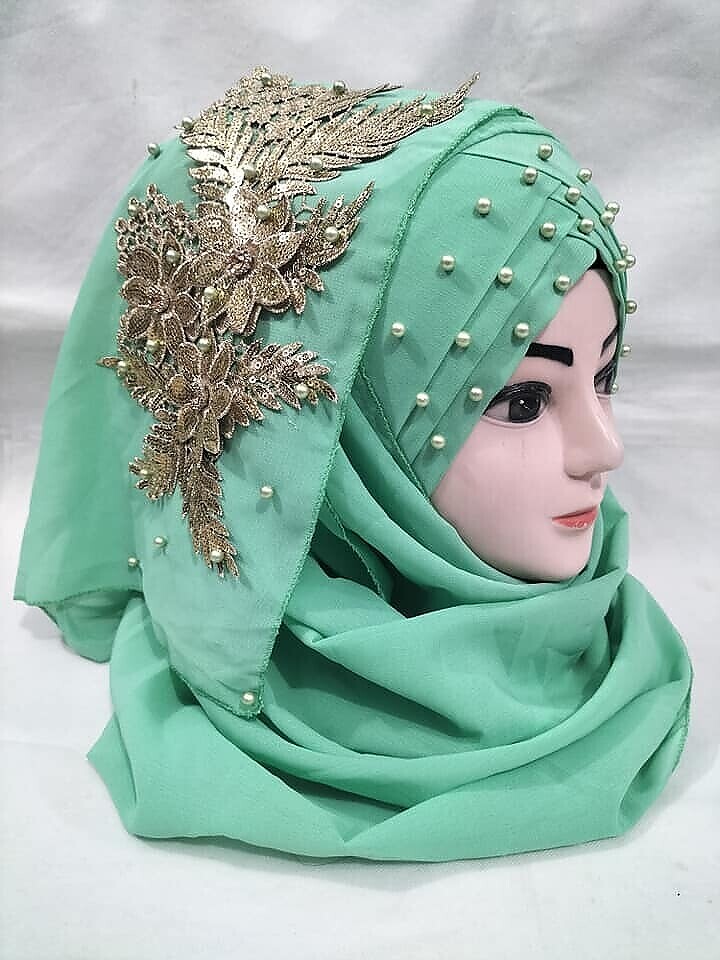 Pearl Ready to Wear with Golden Bunch – Design 2 – Turquoise