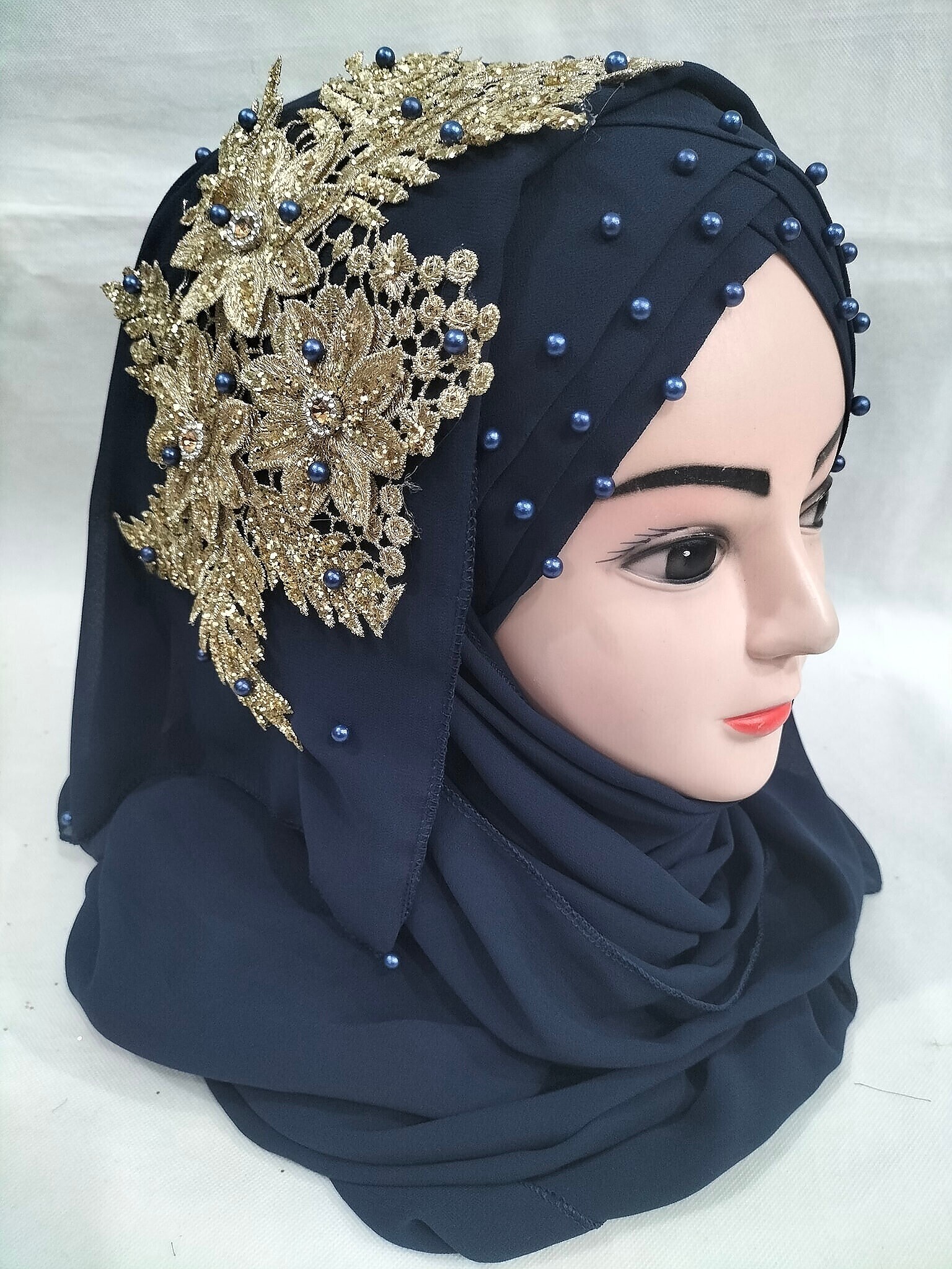Pearl Ready to Wear with Golden Bunch – Navy Blue
