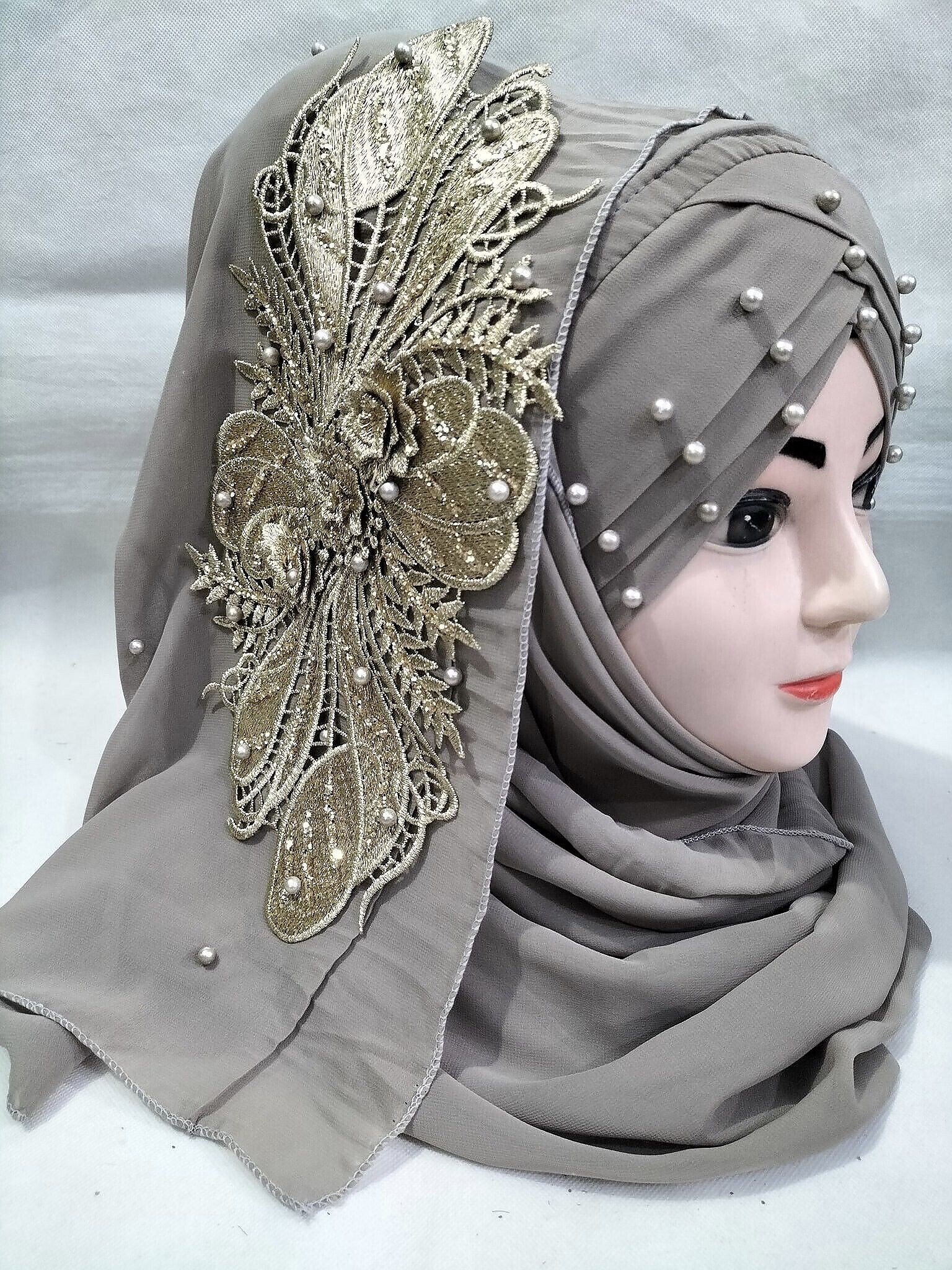 Pearl Ready to Wear with Golden Bunch – Slate Grey (Design 2)