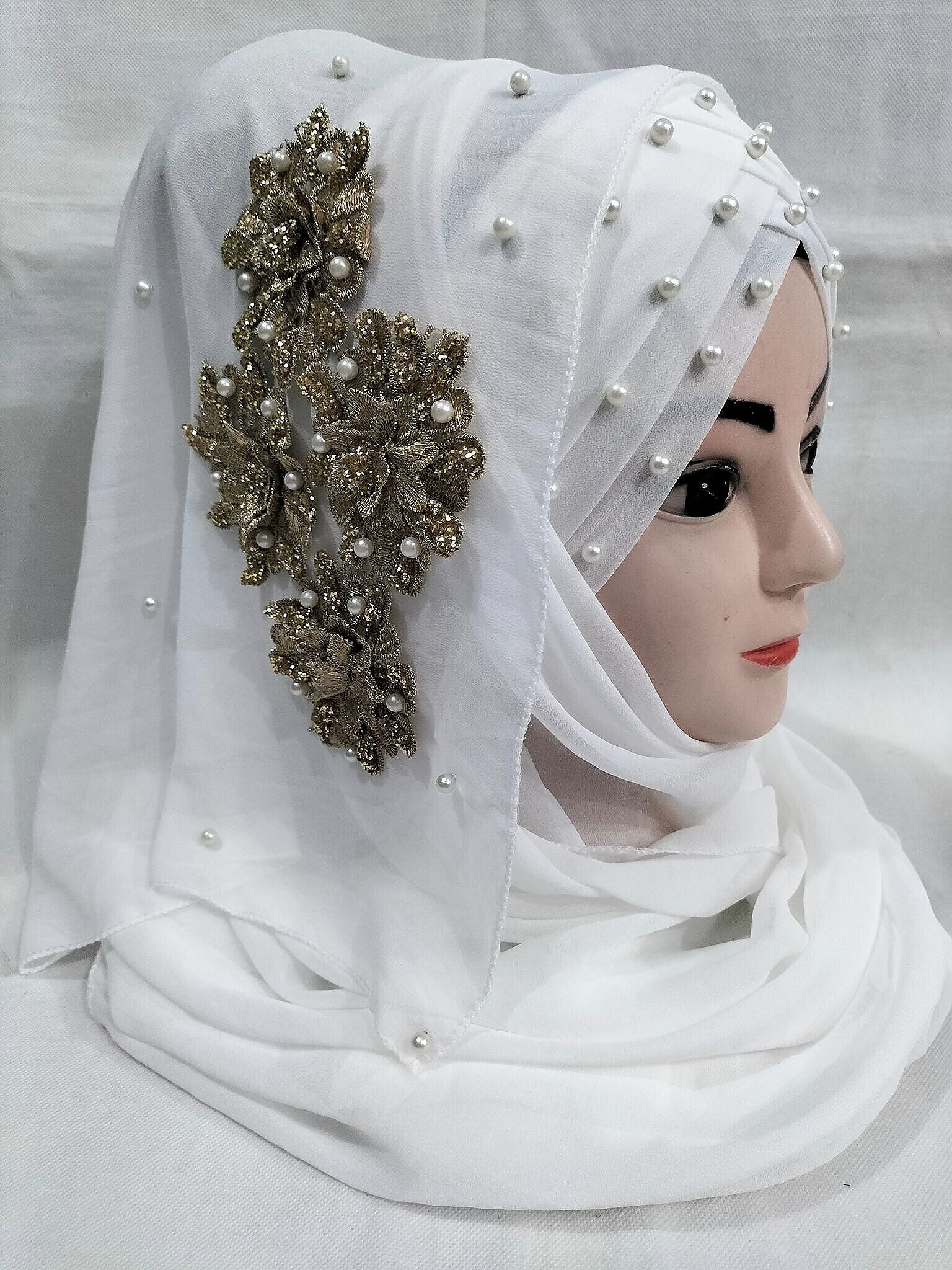 Pearl Ready to Wear with Golden Flower Bunch – White