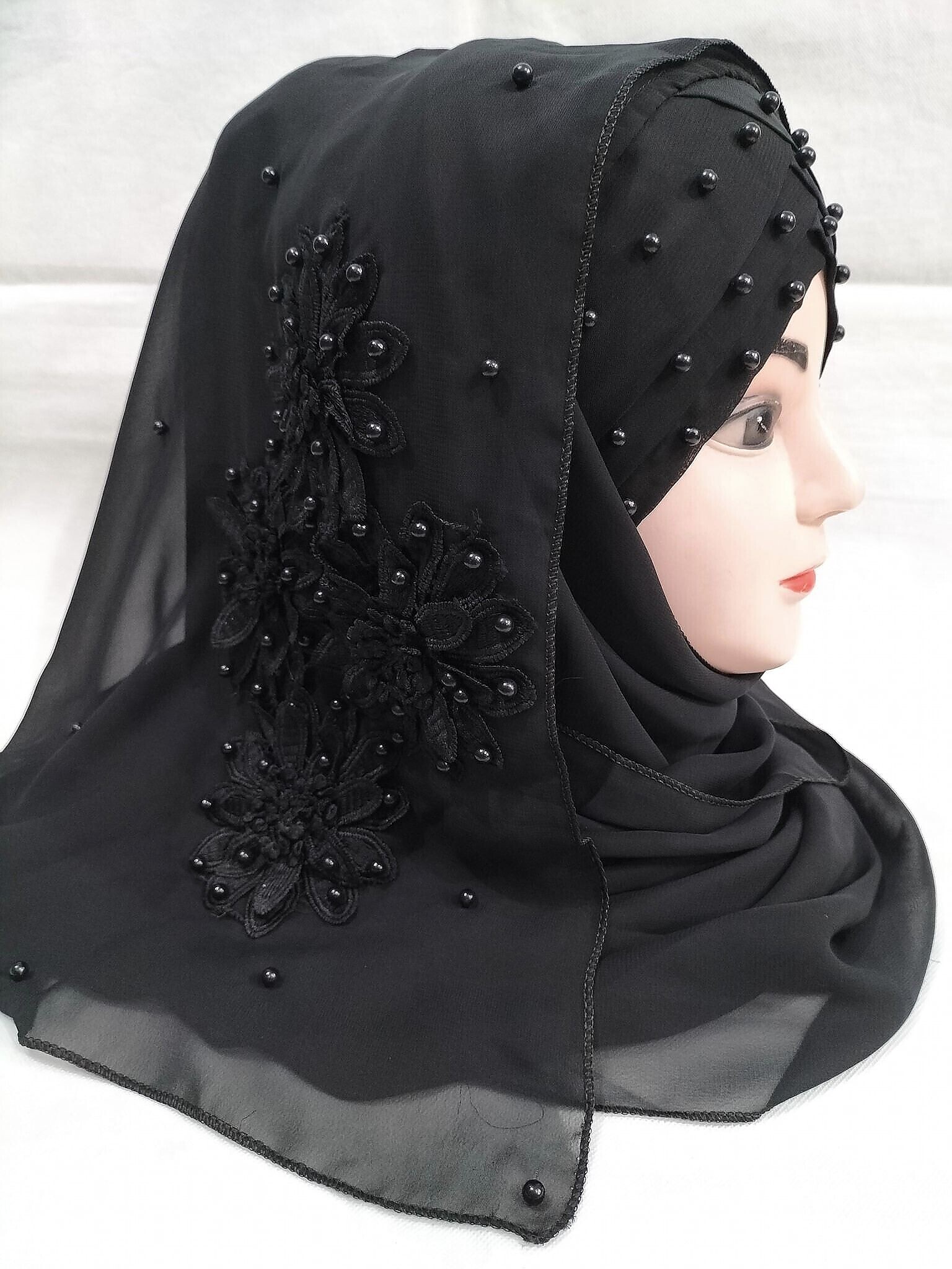 Pearl Ready to Wear with Matching 3D Bunch – Black
