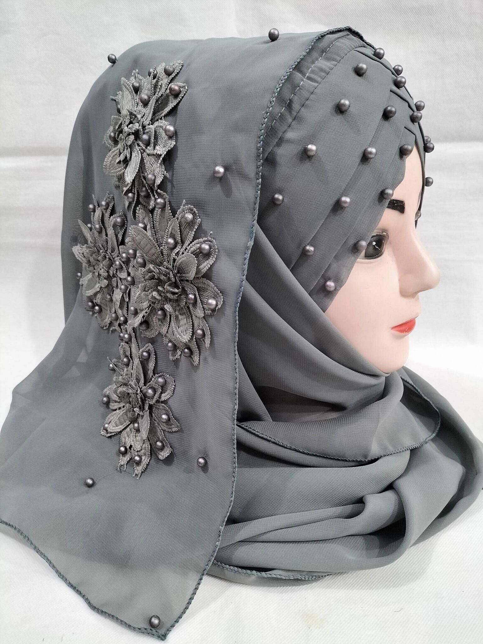 Pearl Ready to Wear with Matching 3D Bunch – Dark Grey