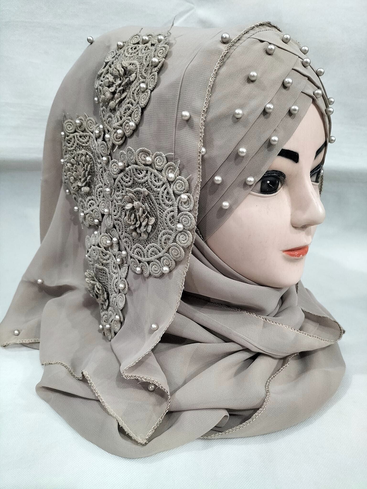 Pearl Ready to Wear with Matching 3D Bunch – Design 2 – Brownish Grey