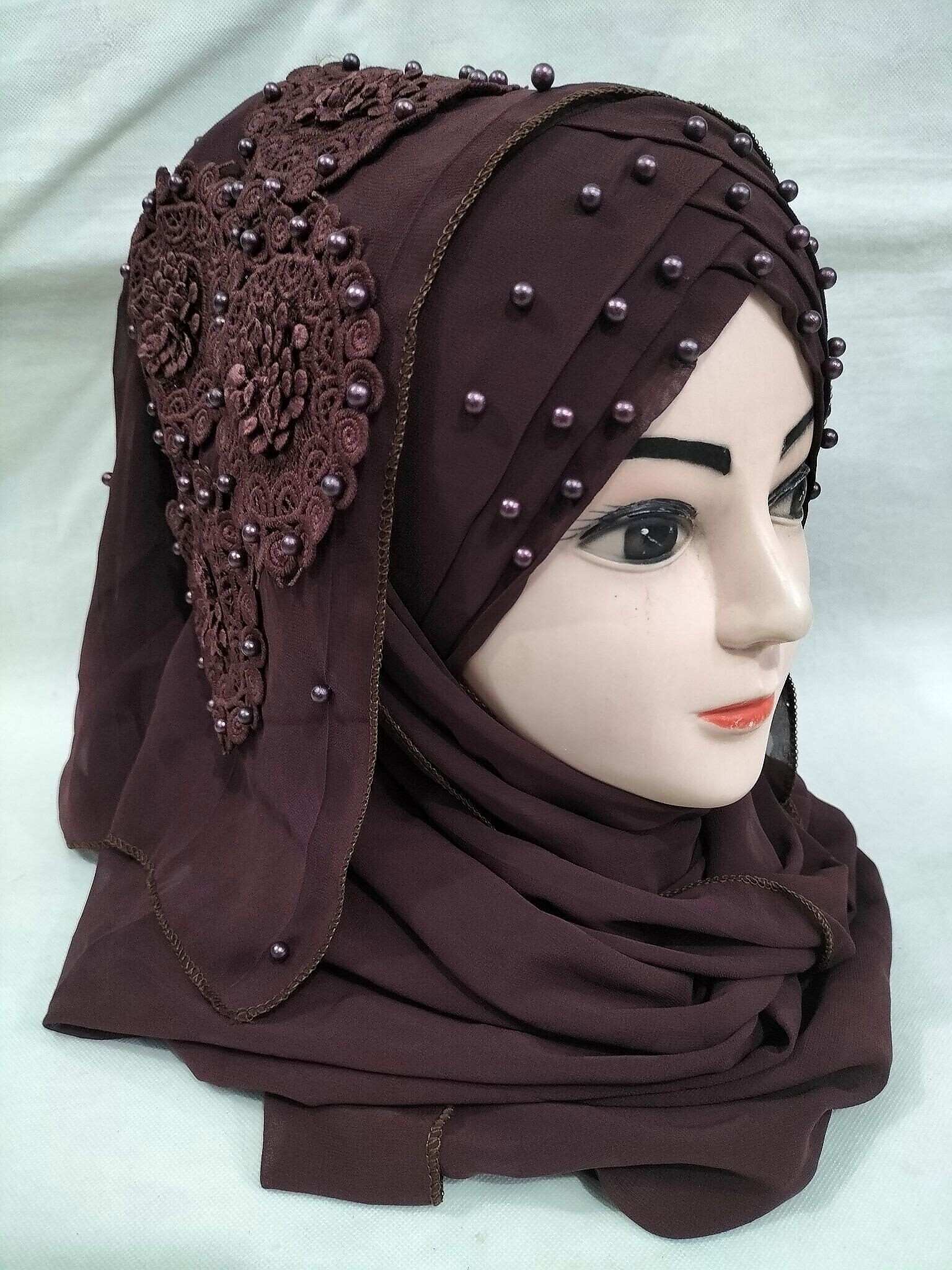 Pearl Ready to Wear with Matching 3D Bunch – Design 2 – Burgundy
