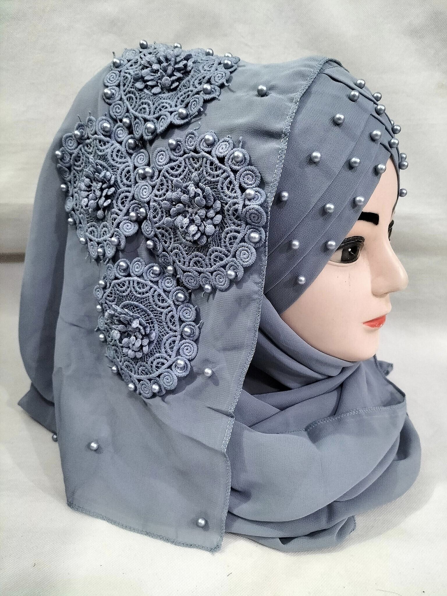 Pearl Ready to Wear with Matching 3D Bunch – Design 2 – Grey