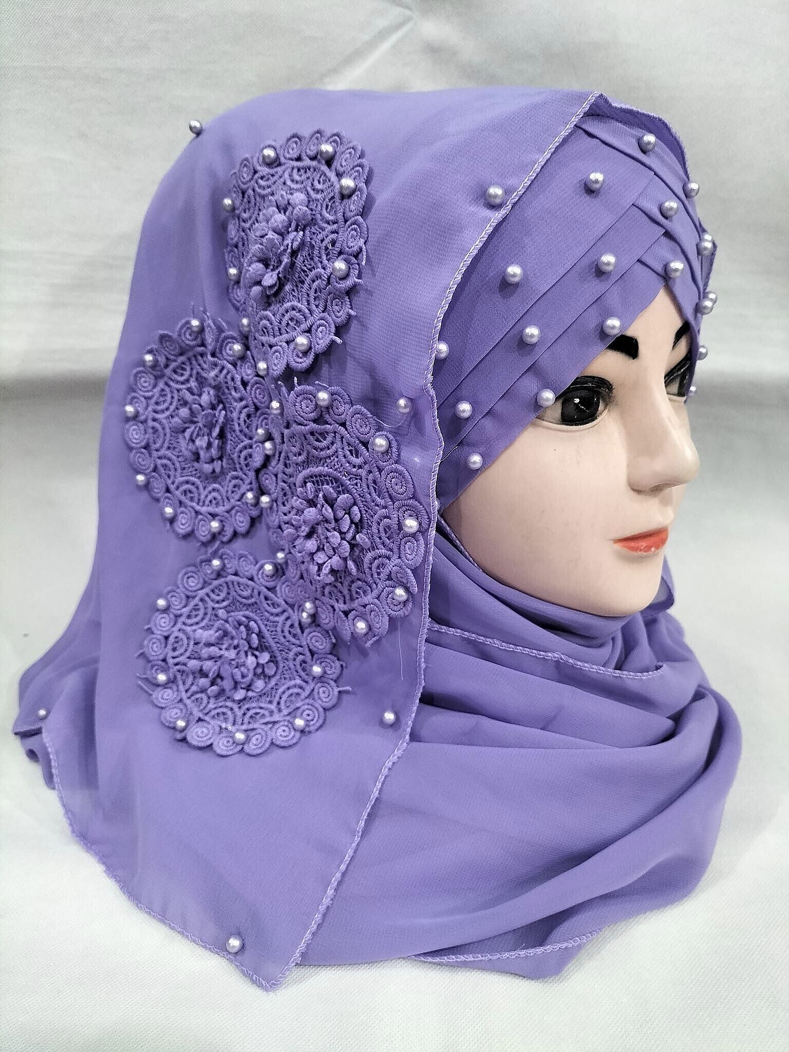 Pearl Ready to Wear with Matching 3D Bunch – Design 2 – Lavender Purple