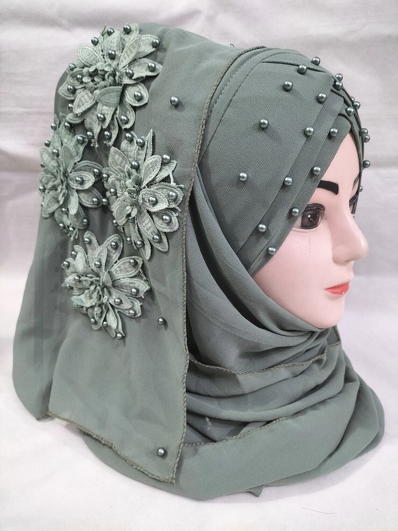 Pearl Ready to Wear with Matching 3D Bunch – Sage Green