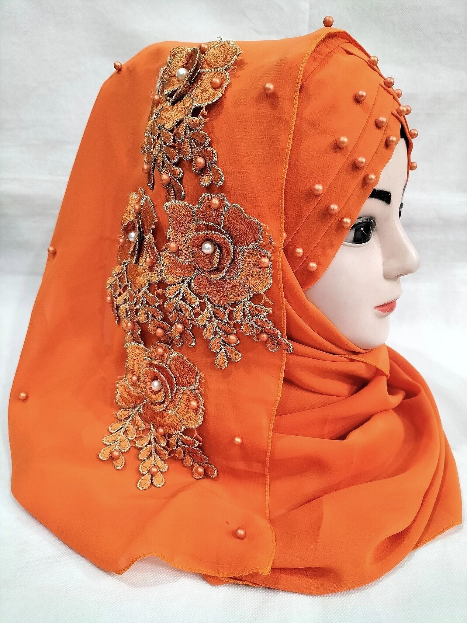 Pearl Ready to Wear with Matching Bunch – Neon Orange