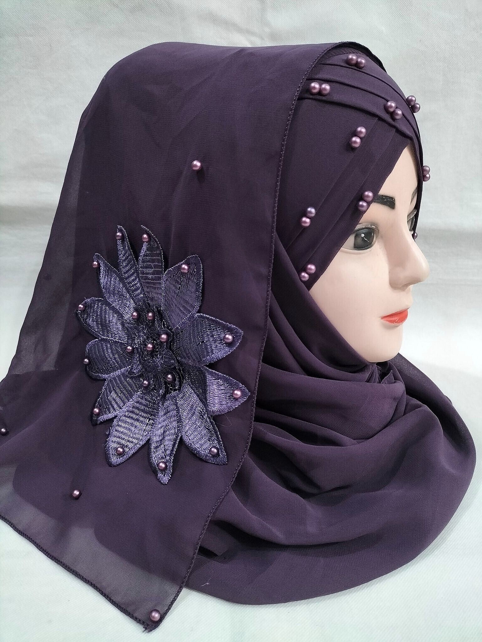 Pearl Ready to Wear with Matching Flower Bunch – Eggplant