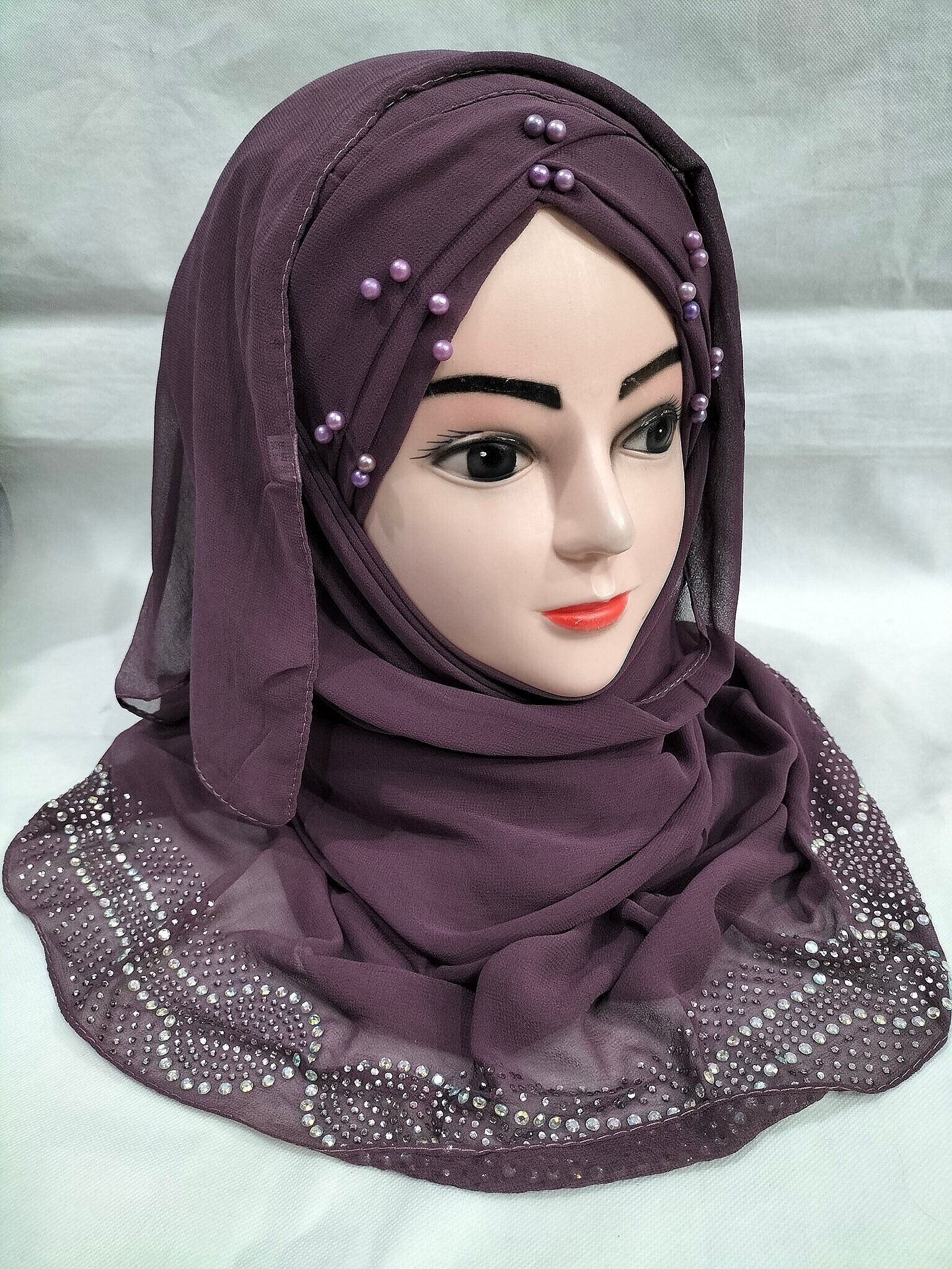 Pearls Criss Cross Ready To Wear with Stone Border – Dirty Purple