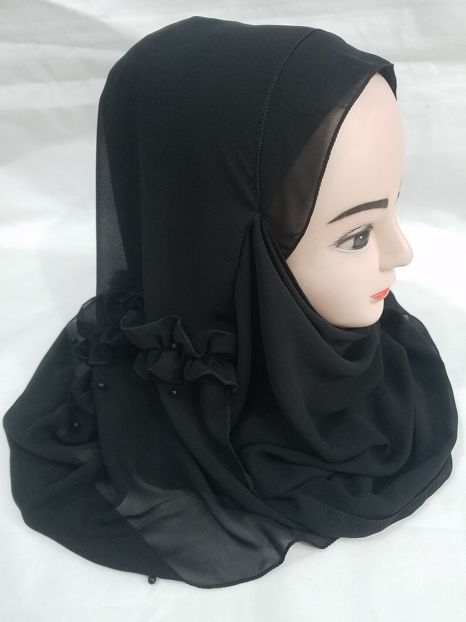 Two Loops Chiffon Instant Hijab with Frill – Black