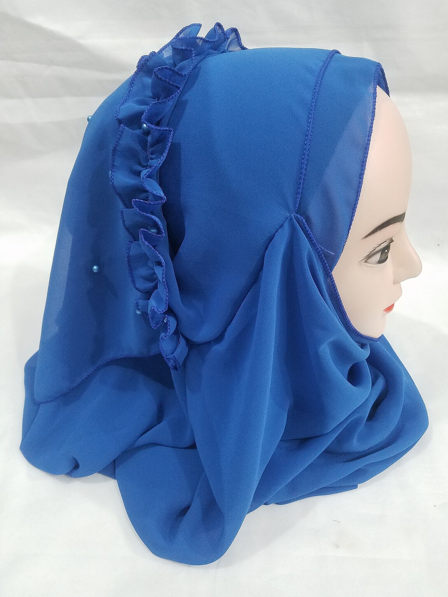 Two Loops Chiffon Instant Hijab with Frill – Blue