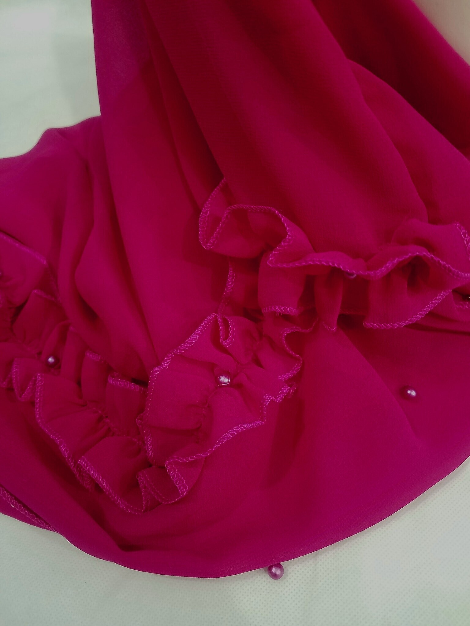 Two Loops Chiffon Instant Hijab with Frill – Deep Pink