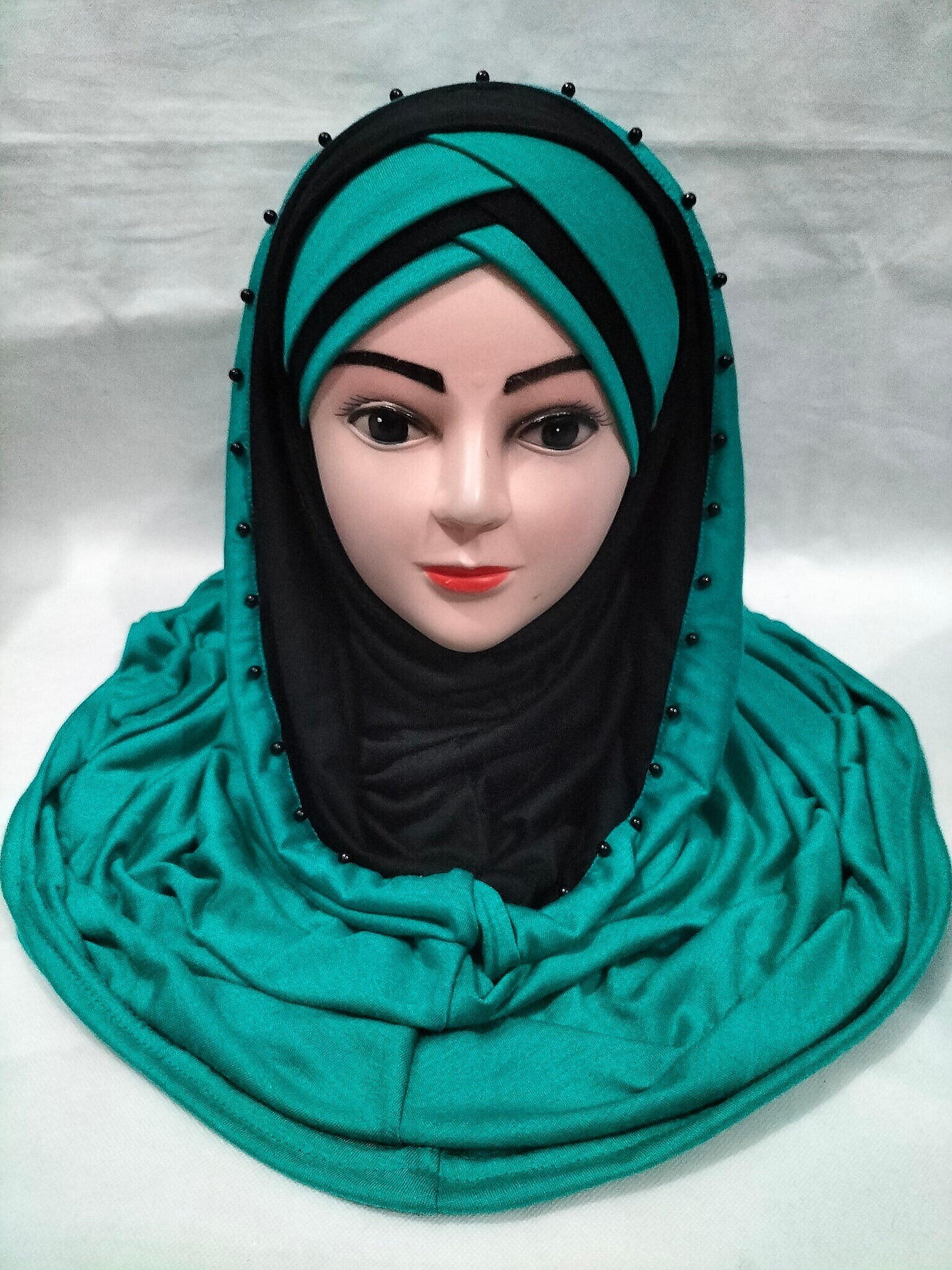 Two-Piece Cotton Jersey with Pearls – Turquoise