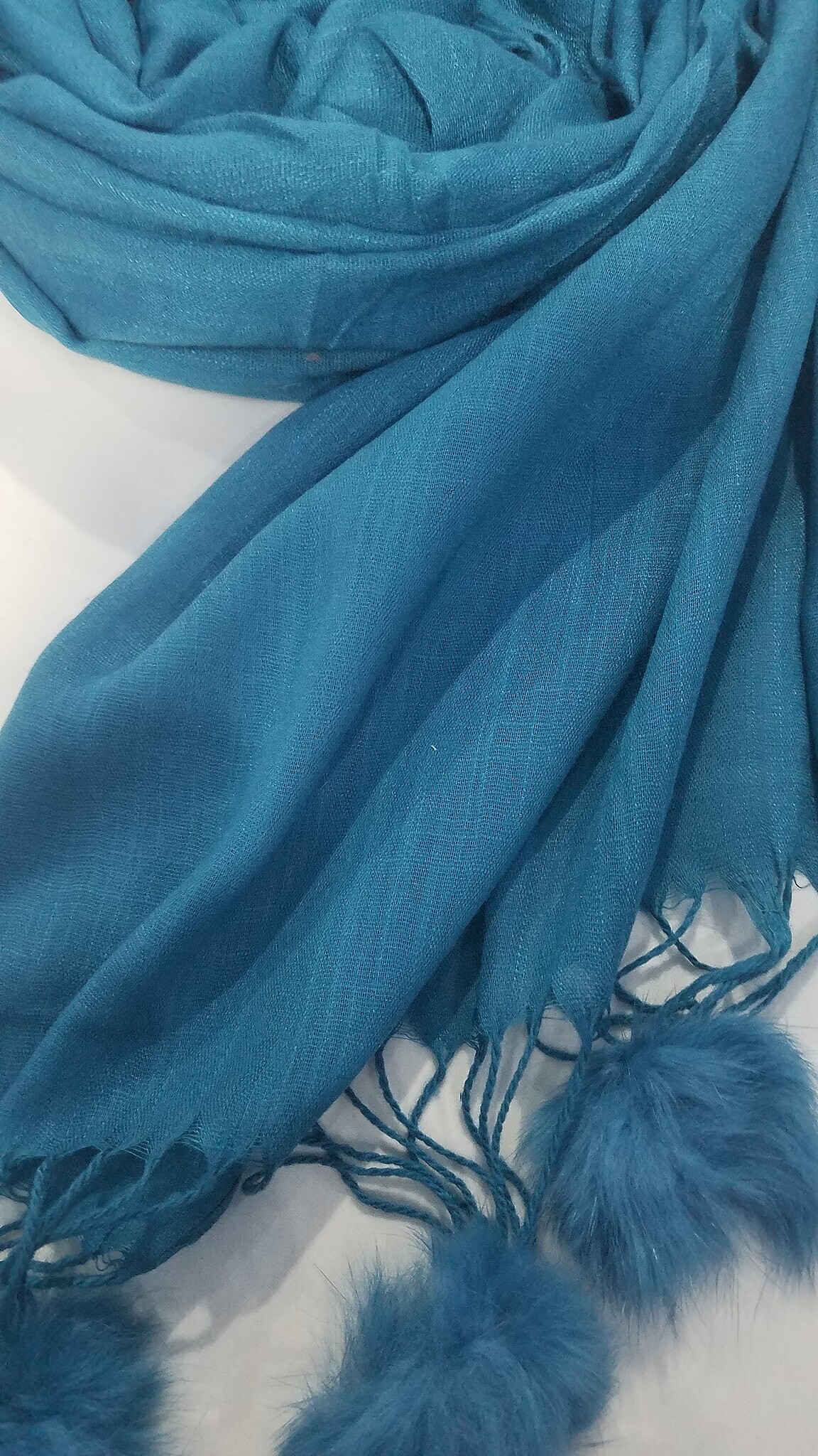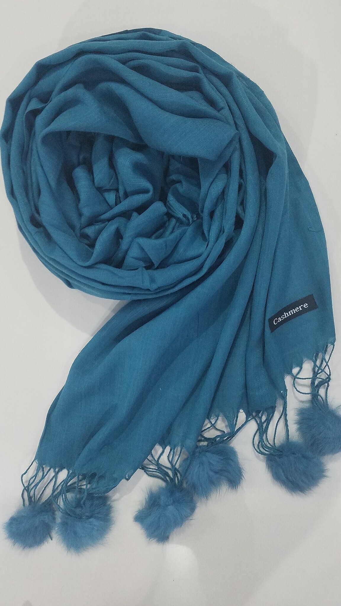 Cashmere Scarf with Pom Pom – Aqua Blue