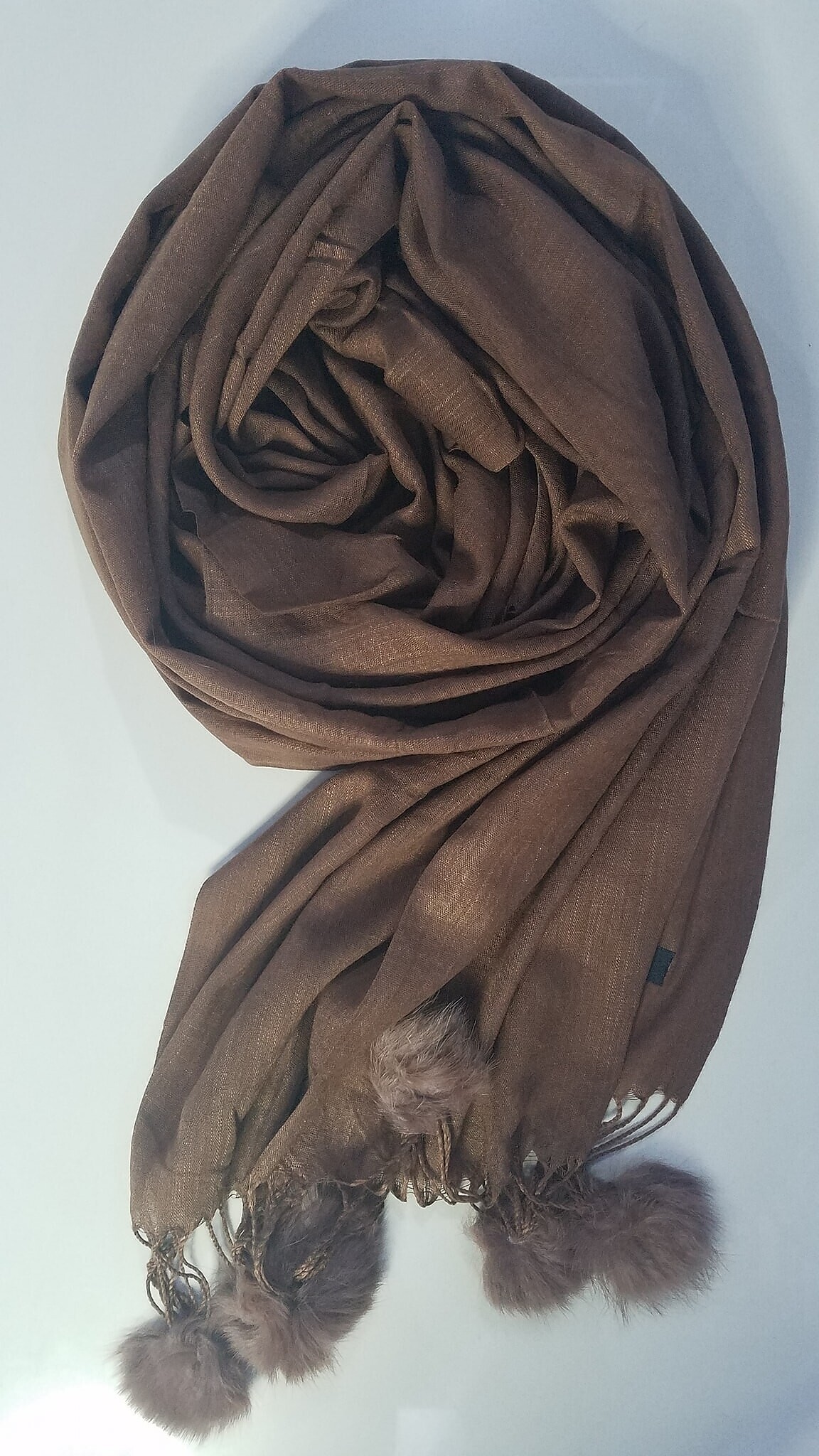 Cashmere Scarf with Pom Pom – Cigar Brown