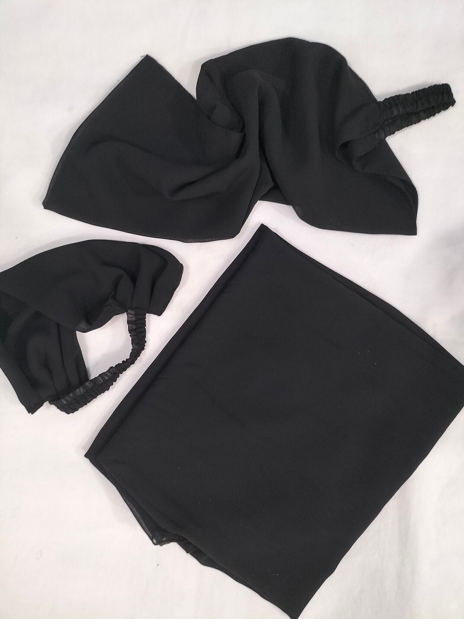 12 reviews for Plain Three Piece Matching Hijab Set – Black