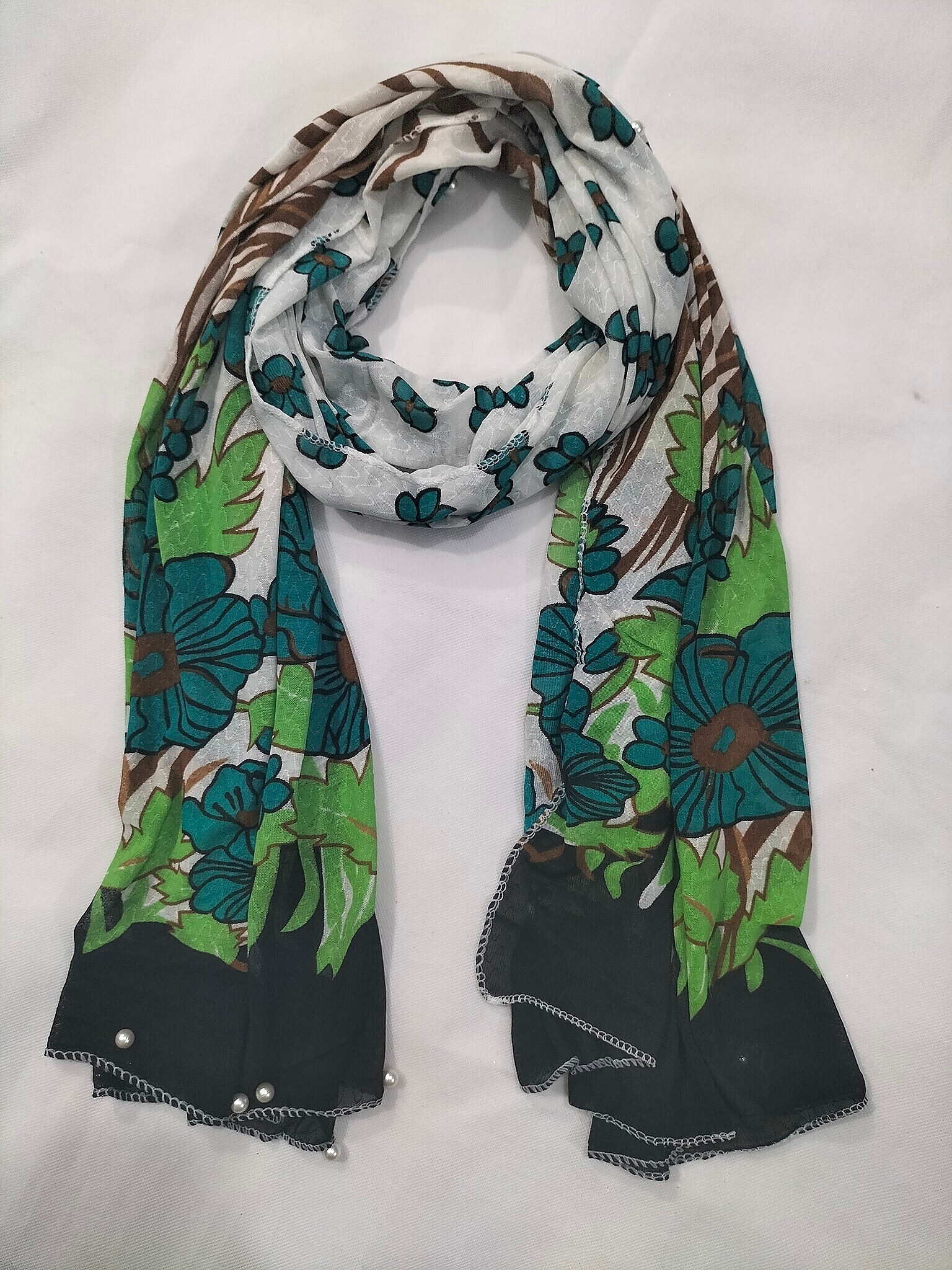 Stretchable Net Scarf with Pearls – Print 9