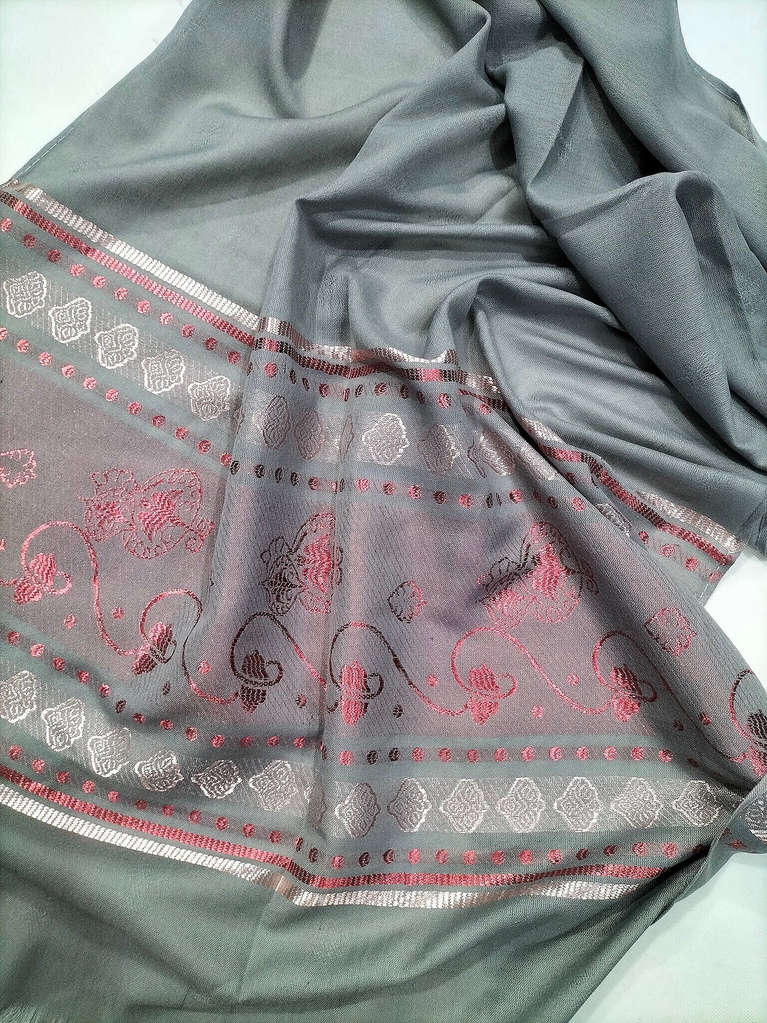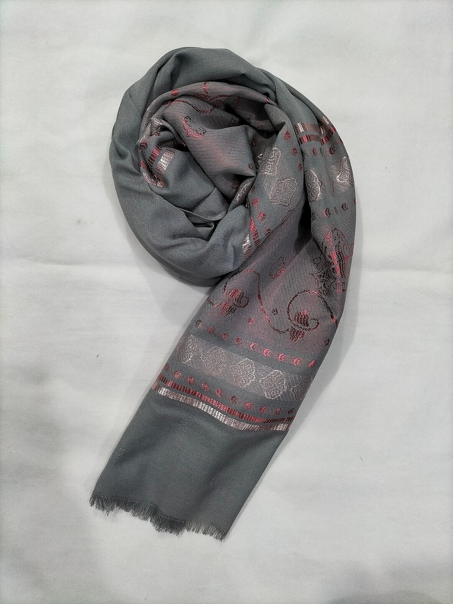 Banarsi Style Lawn Scarf – Steel Grey