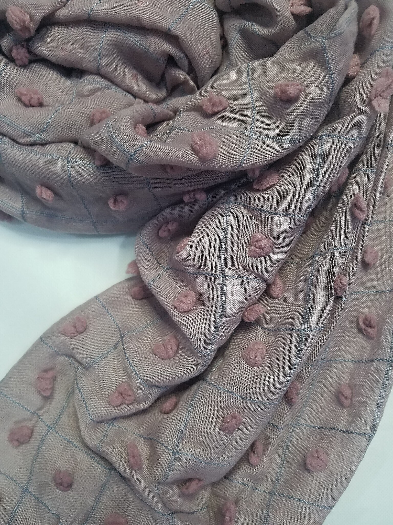 Checks and Tassels with Bubbles Lawn Scarf – Dirty Purple