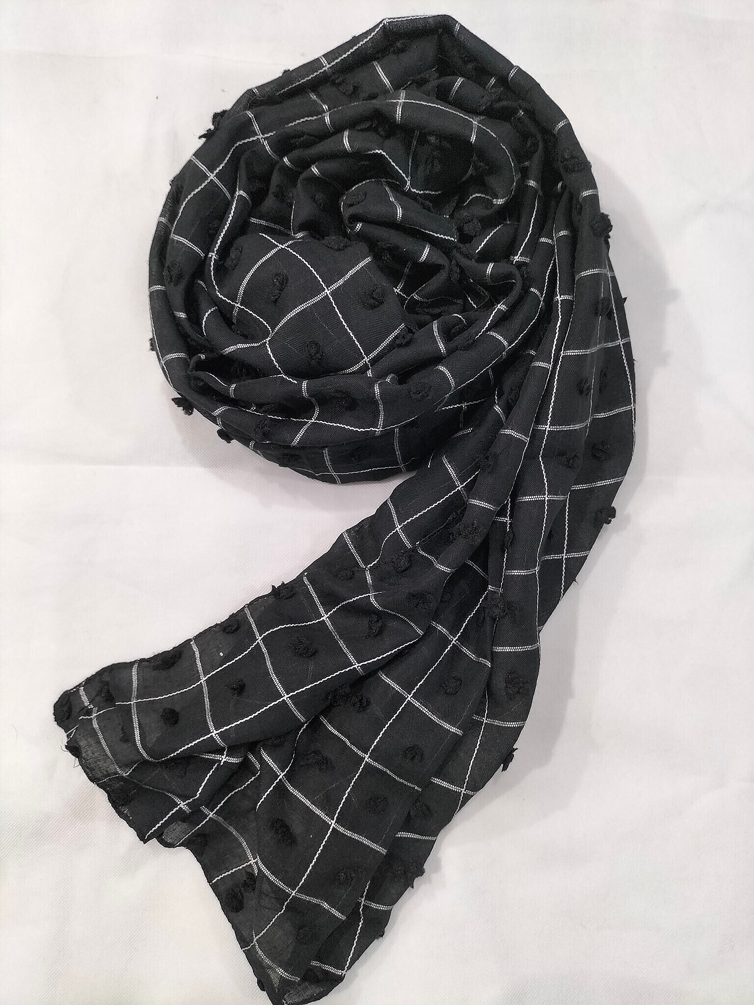 Checks with Bubbles Lawn Scarf – Black
