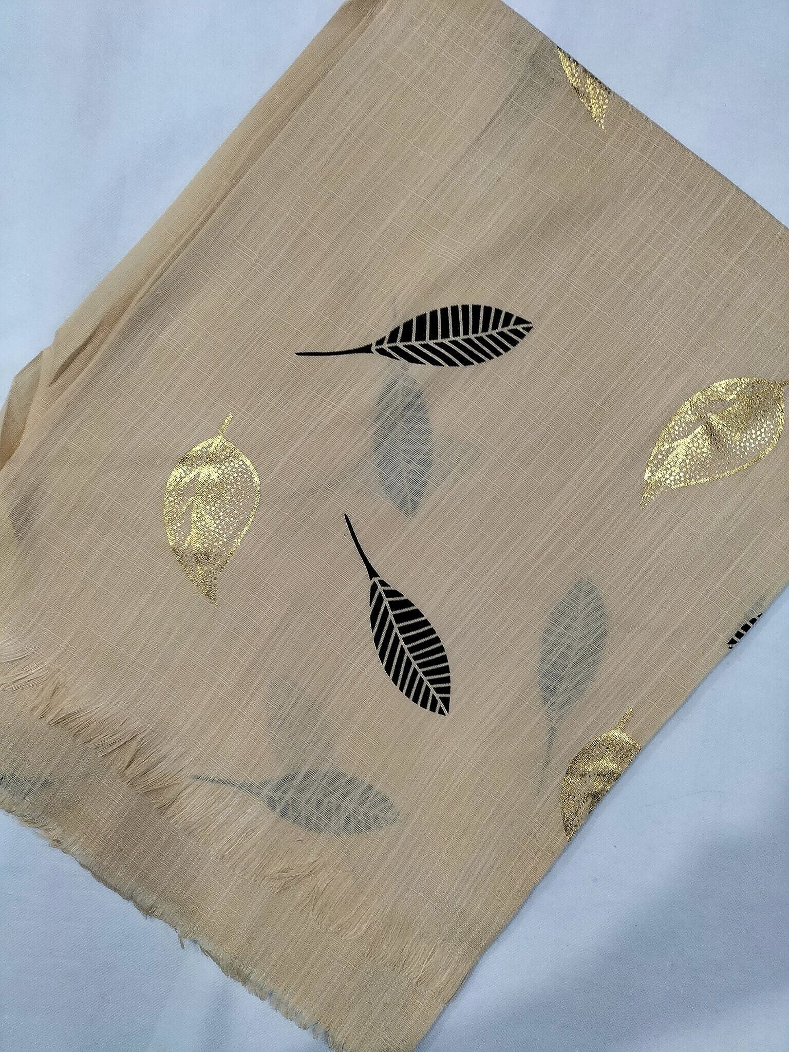Gold Leaf Lawn Scarf – Light Golden