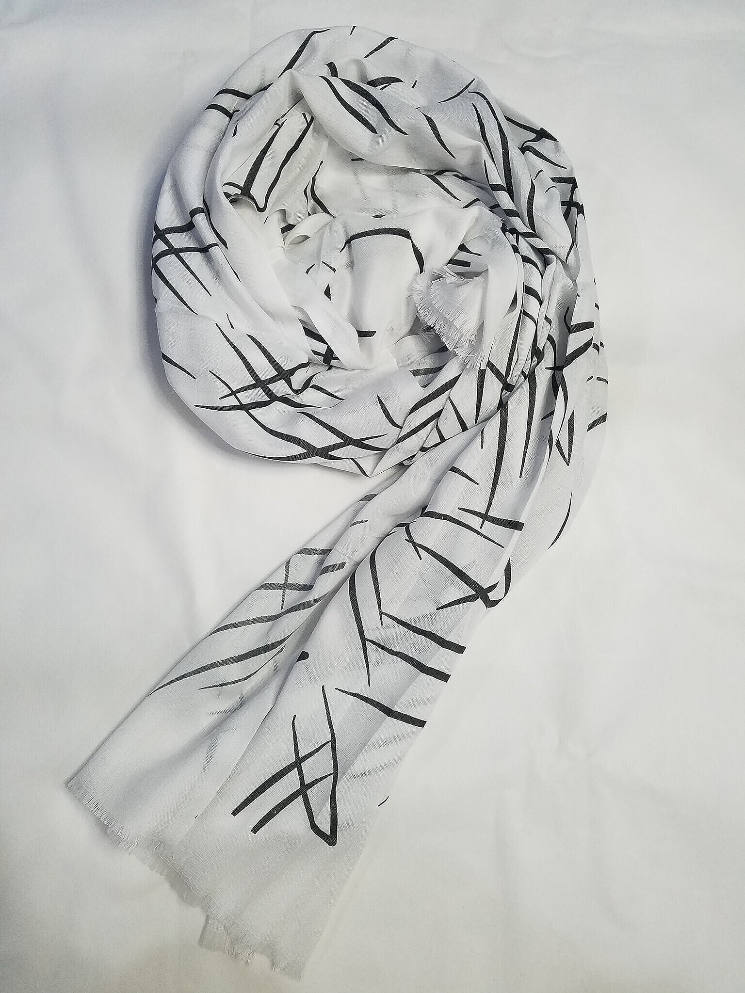 Printed Lawn Scarf – White