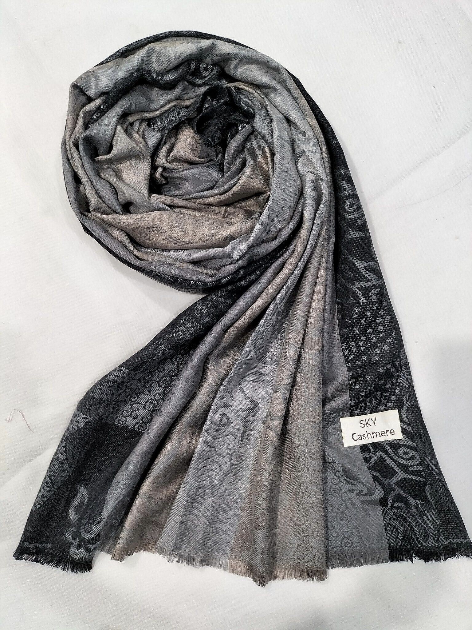 Sky Cashmere Self Printed Scarf – Black and Copper