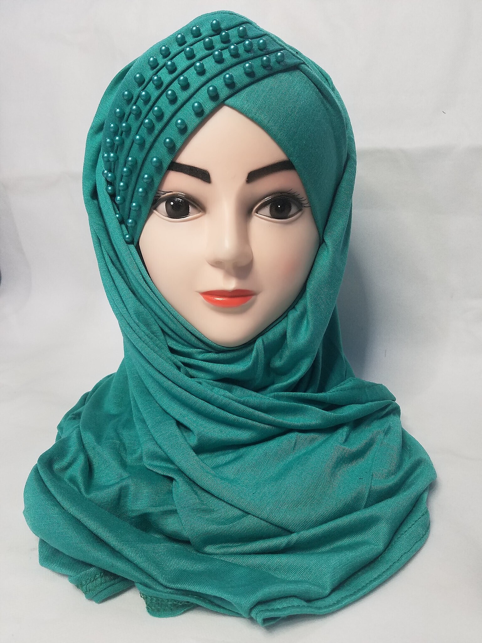 Cross Over Instant Hijabs with Pearls – Sea Green